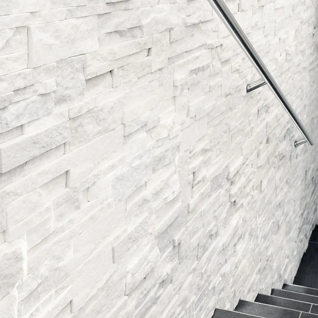 Камень продается готовыми панелями, состоящими из склеенных кусочков камня. 3d панели коллекции "Модерн" собраны из фрагментов различной геометрии. Размеры панели 350 х 180 х 10-20 мм. Имеет выраженный 3D эффект, в массе создает красивую фактурную поверхность и придает объем пространству. Обладает природным блеском. Кварцит бежевый используется для внутренней и внешней отделки.