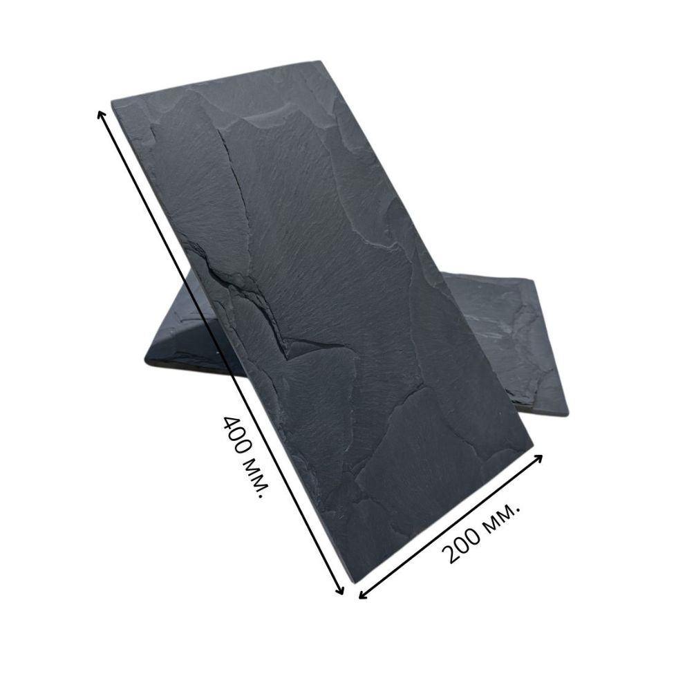 Плитка черный сланец "Машрум" продается поштучно. Вес 2,8 кг (1 шт). Размер плитки 400x200x10-20 мм. Имеет текстурную поверхность и природные сколы. Используется для внутренней и внешней отделки.